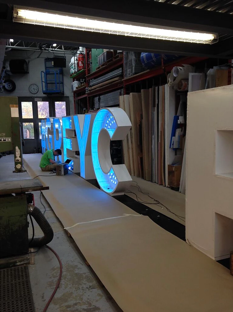 The sign consisted of 8 characters (#GREYCUP), and each letter was internally lit using addressable LEDs.